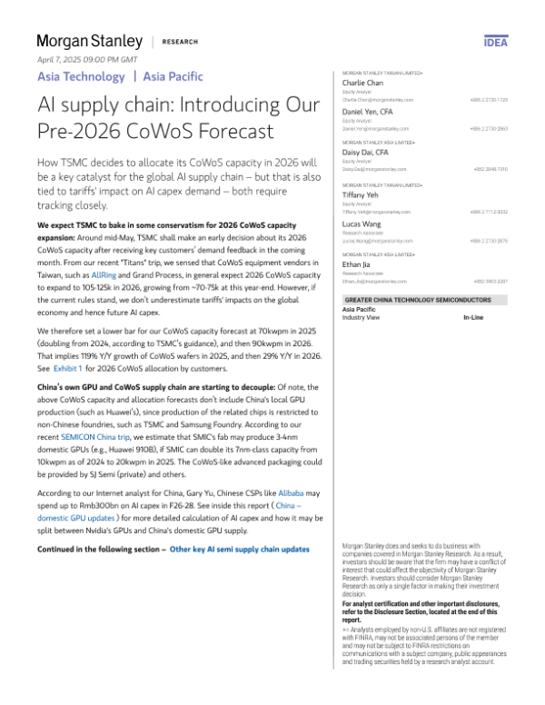 【Morgan Stanley】【2025】AI Supply Chain TSMC to expand 3nm capacity for major Al customer's growth?-20页 证券期货研究报告