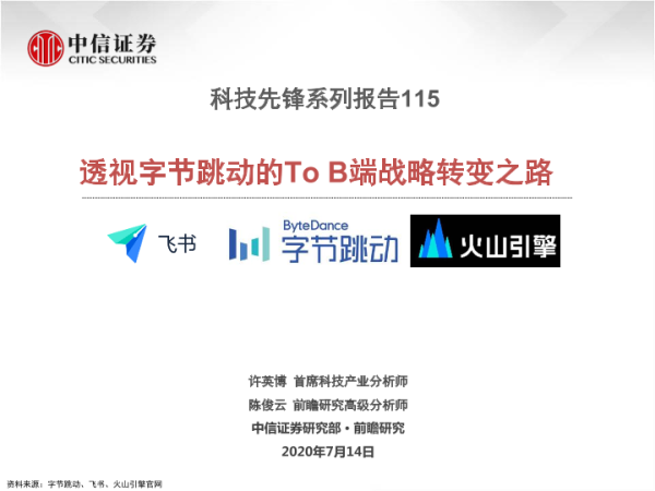 【中信证券】【20200714】科技先锋系列报告115:透视字节跳动的To B端战略转变之路-18页 行业研究