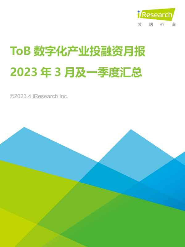 【艾瑞咨询】【202304】2023-04-09-ToB数字化产业投融资月报-2023年3月及一季度汇总-13页 行业研究