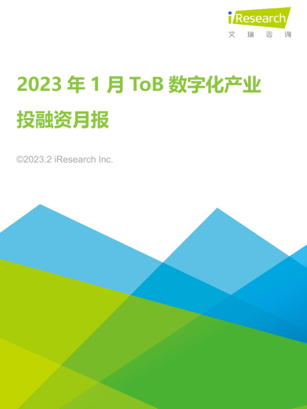 【艾瑞咨询】【20230207】2023年1月ToB数字化产业投融资月报-15页 行业研究