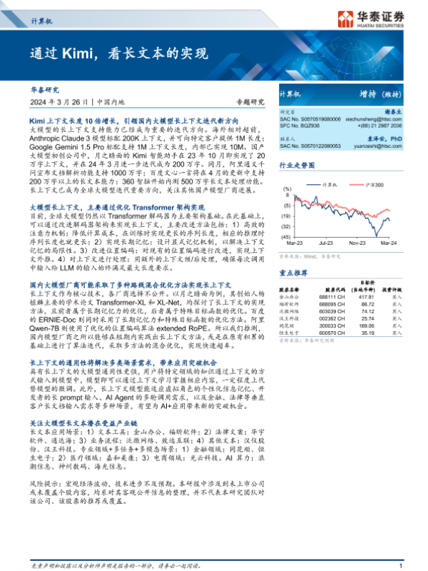 【华泰证券】【20240326】计算机行业专题研究:通过Kimi,看长文本的实现-18页 行业研究