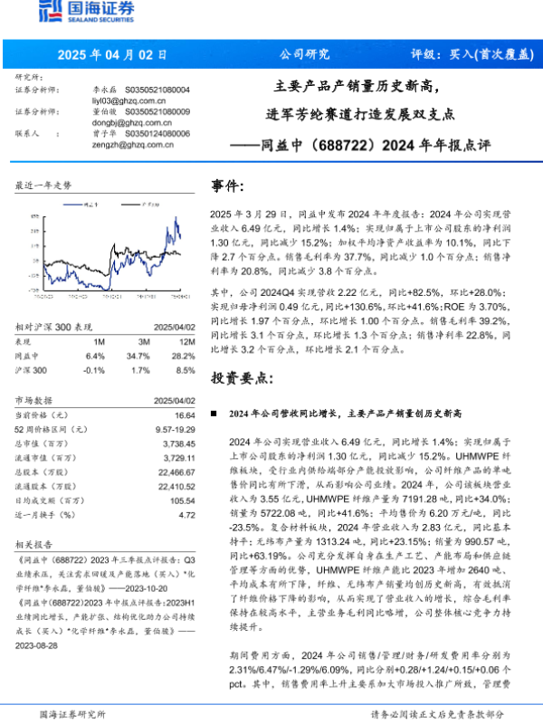【国海证券】【20250402】同益中2024年年报点评:主要产品产销量历史新高,进军芳纶赛道打造发展双支点-11页 公司研究