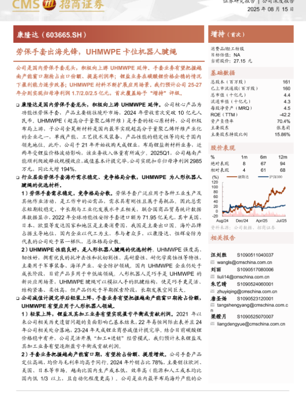 【海通证券】【20250815】康隆达-劳保手套出海先锋,UHMWPE卡位机器人腱绳-25页 证券期货研究报告