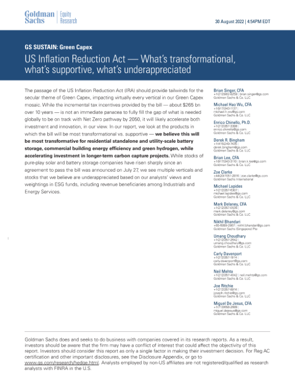 【Goldman Sachs】【20220830】US Inflation Reduction Act — What’s transformational, what’s supportive, what’s underappreciated-72页 行业研究