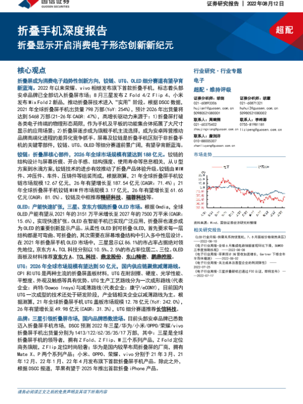 【湘财证券】【20220726】消费电子行业点评报告:折叠机价格呈下降趋势,关注UTG及铰链投资机会-2页 行业研究