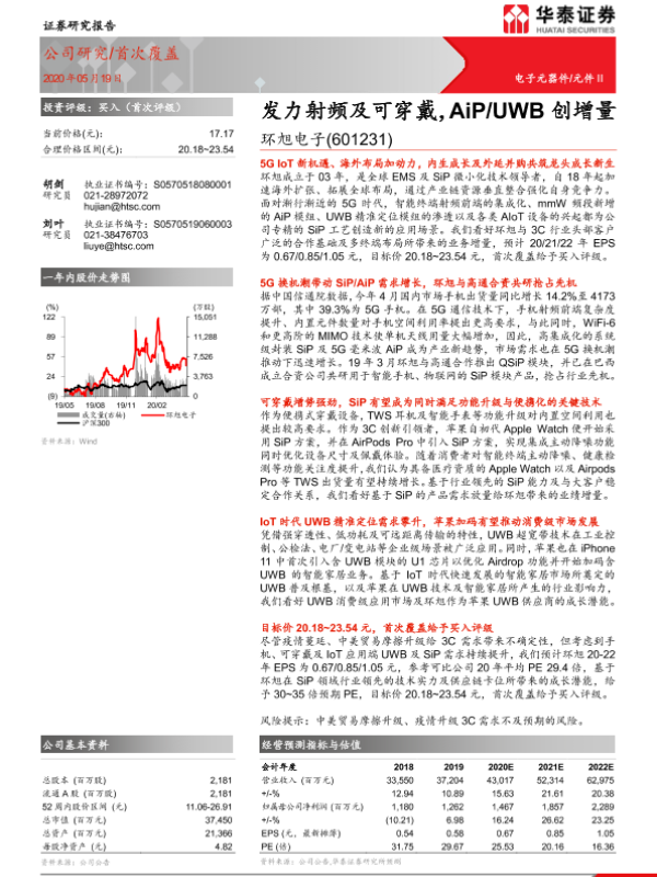 【华泰证券】【20200519】环旭电子-发力射频及可穿戴,AiP UWB创增量-24页 行业研究
