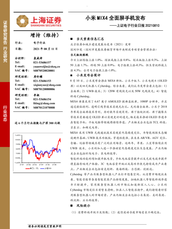 【上海证券】【20210811】上证电子行业日报:小米MIX4全面屏手机发布-6页 行业研究