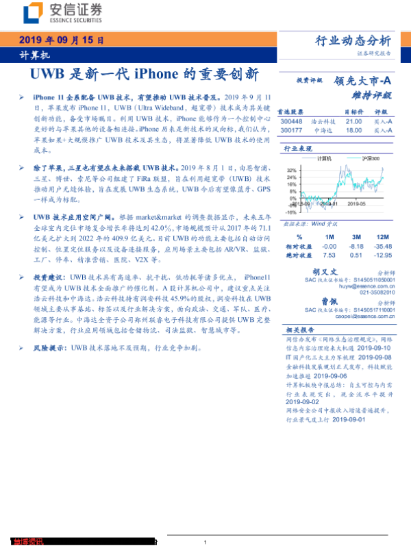 【安信证券】【20190915】UWB是新一代iPhone的重要创新-6页 行业研究