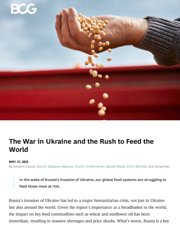 【Boston Consulting Group】【20220517】The War in Ukraine and the Rush to Feed the World-17页 行业研究