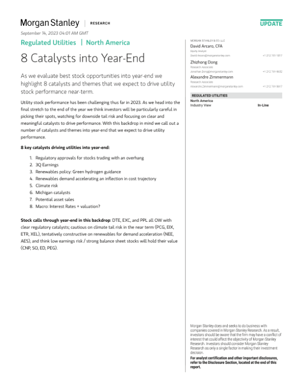 【Morgan Stanley】【2023】Regulated Utilities 8 Catalysts into Year-End-18页 行业研究