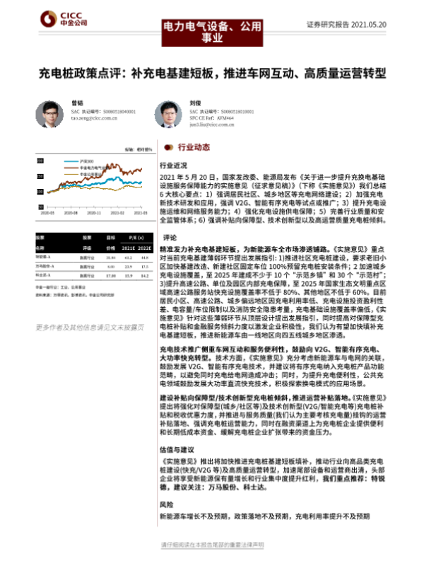 【中金公司】【20210520】电力电气设备、公用事业行业:充电桩政策点评:补充电基建短板,推进车网互动、高质量运营转型-6页 行业研究