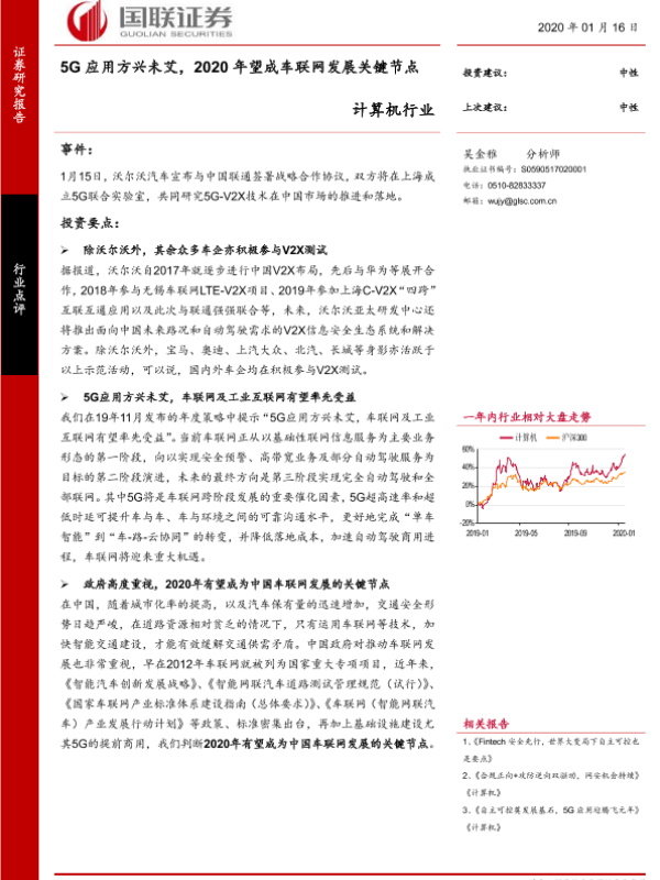 【国联证券】【20200116】计算机行业:5G应用方兴未艾,2020年望成车联网发展关键节点-7页 行业研究