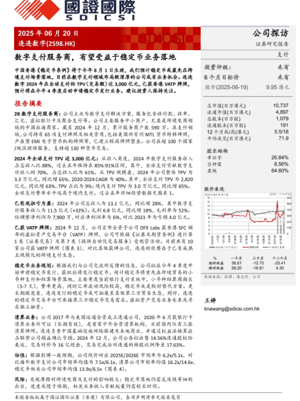 【国证国际】【202506】数字支付服务商,有望受益于稳定币业务落地-5页 公司研究