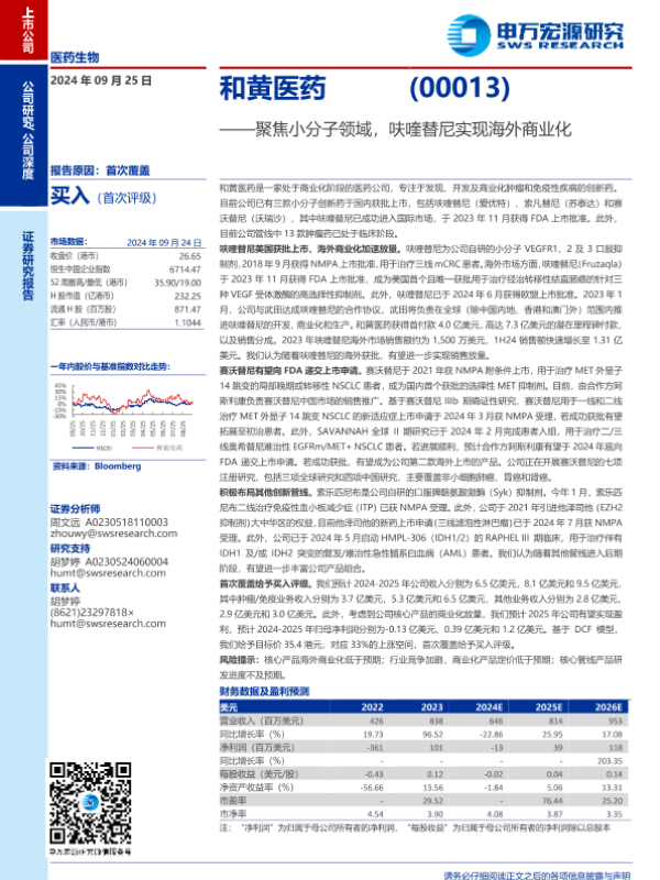 【申万宏源】【20240925】和黄医药(00013)聚焦小分子领域,呋喹替尼实现海外商业化-34页 行业研究