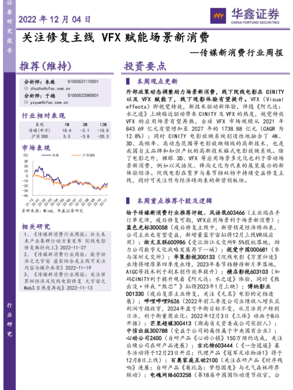 【华鑫证券】【20221204】传媒新消费行业周报:关注修复主线VFX赋能场景新消费-20页 行业研究