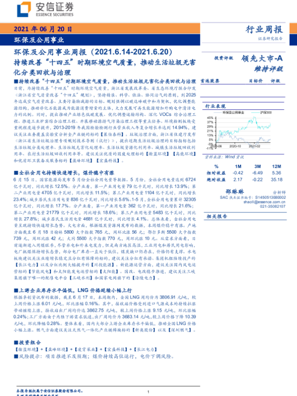 【安信证券】【20210620】持续改善“十四五”时期环境空气质量,推动生活垃圾无害化分类回收与治理-16页 行业研究