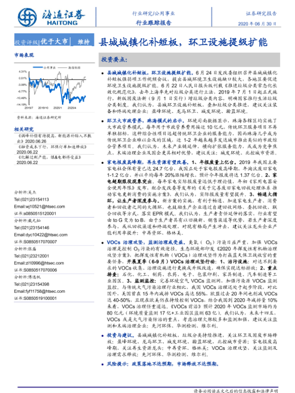 【海通证券】【20200630】公用事业行业跟踪报告:县城城镇化补短板,环卫设施提级扩能-2页 行业研究
