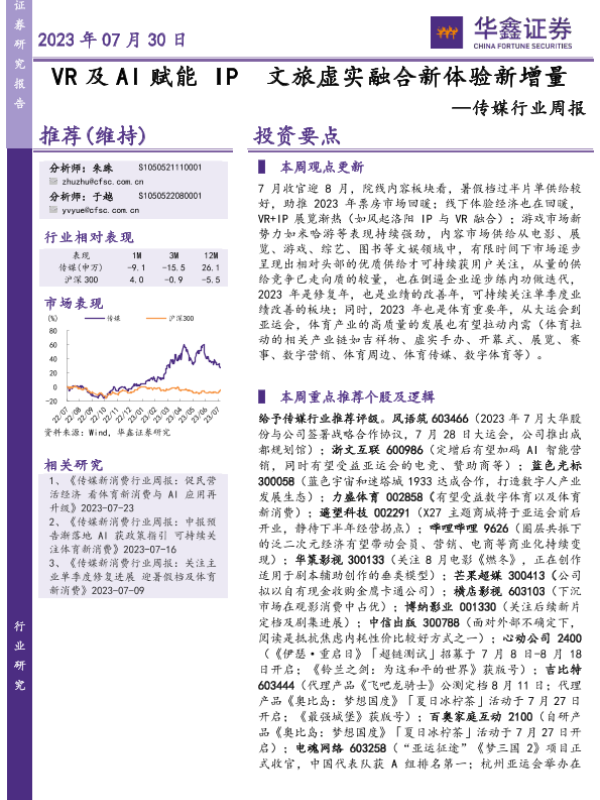 【华鑫证券】【20230730】VR及AI赋能IP文旅虚实融合新体验新增量-21页 行业研究