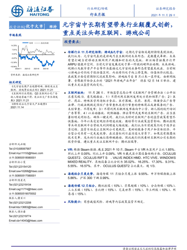 【海通证券】【20211129】20211129-海通证券-传媒行业月报:元宇宙中长期有望带来行业颠覆式创新,重点关注头部互联网、游戏公司-12页 行业研究