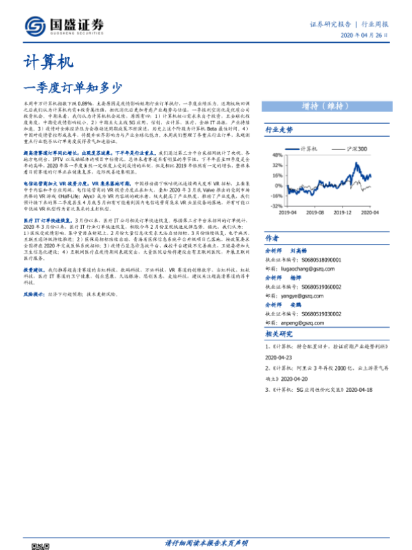 【国盛证券】【20200426】计算机行业周报:一季度订单知多少-6页 行业研究
