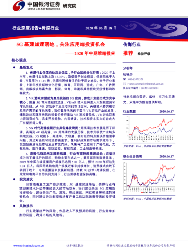 【银河证券】【20200618】2020年中期策略报告:5G基建加速落地,关注应用端投资机会-43页 行业研究