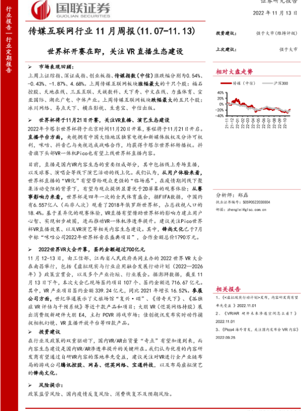 【国联证券】【20221113】传媒互联网行业11月周报:世界杯开赛在即,关注VR直播生态建设-14页 行业研究