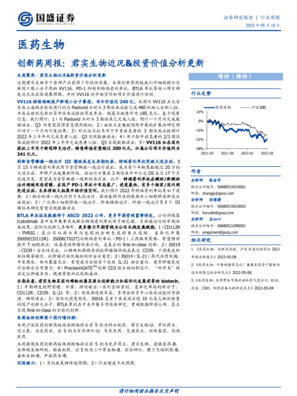 【国盛证券】【20220515】创新药周报:君实生物近况&投资价值分析更新-20页 行业研究