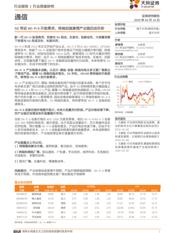 【天风证券】【20200216】5G带动Wi-Fi6升级需求,终端加速渗透产业链启动在即-33页 行业研究