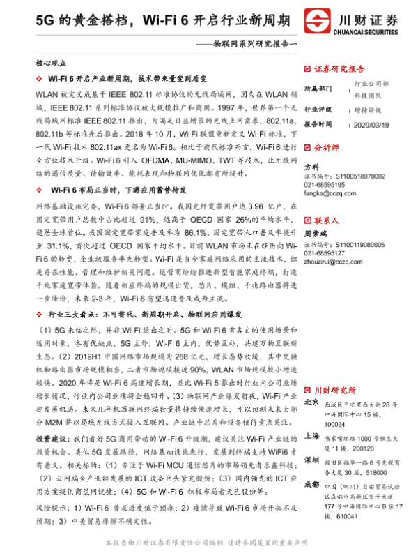 【川财证券】【20200319】5G的黄金搭档,Wi-Fi 6开启行业新周期-32页 行业研究