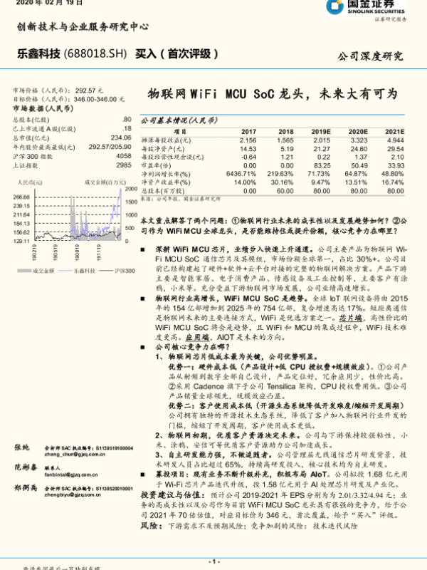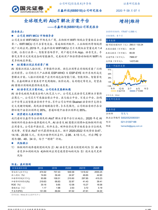 【国元证券】【20200907】20200907-国元证券-乐鑫科技-688018.SH-公司深度报告:全球领先的AIoT解决方案平台-82页 行业研究