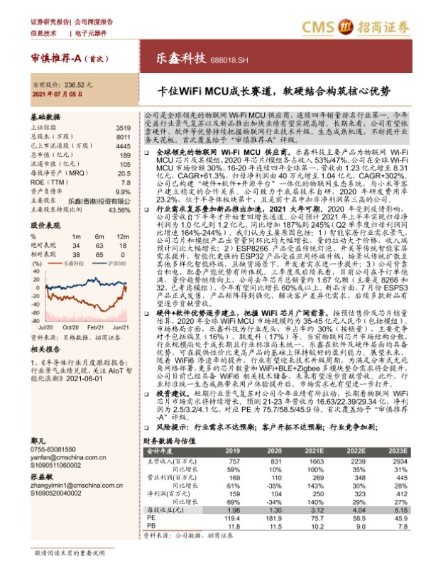 【海通证券】【20210705】卡位WiFi MCU成长赛道,软硬结合构筑核心优势-25页 公司研究