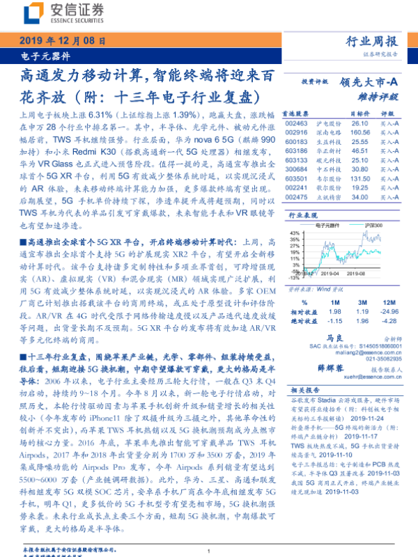 【安信证券】【20191208】20191208-安信证券-电子元器件行业周报:高通发力移动计算,智能终端将迎来百花齐放(附:十三年电子行业复盘)-20页 行业研究