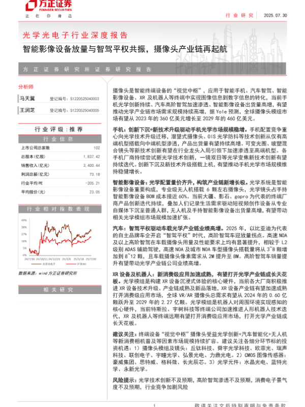 【方正证券】【202507】光学光电子行业深度报告 智能影像设备放量与智驾平权共振,摄像头产业链再起航-24页 行业研究
