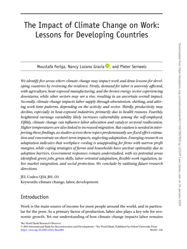 【The World Bank】【2025】The Impact of Climate Change on Work Lessons for Developing Countries-43页 学术论文