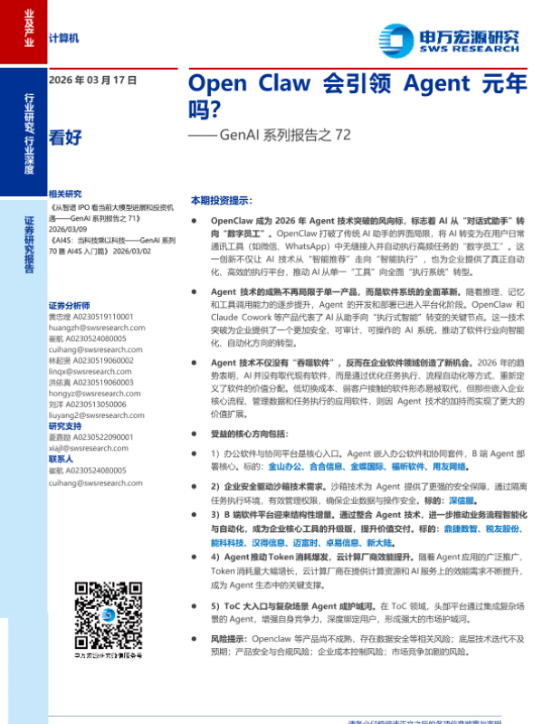 【申万宏源】【202603】Open Claw会引领 Agent元年 吗?-34页 证券期货研究报告