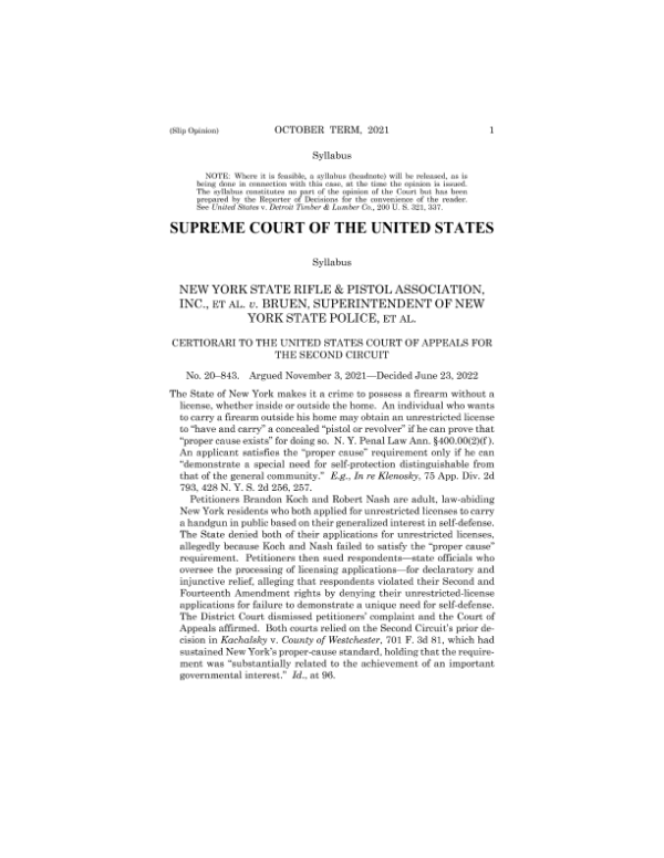 【SUPREME COURT OF THE UNITED STATES】【2022】美国最高法院裁定:控枪违宪,将允许更多人合法持枪-135页 政策文件