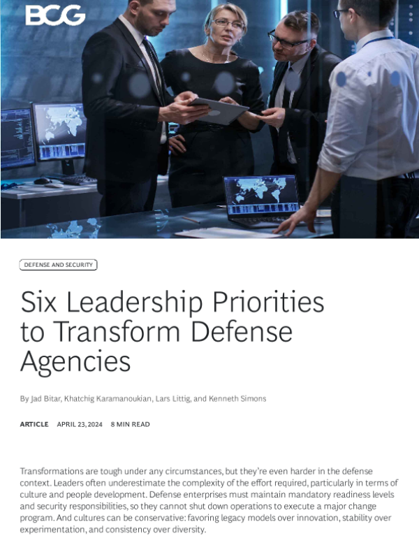 【Boston Consulting Group】【20240423】Six Leadership Priorities to Transform Defense Agencies-10页 行业研究