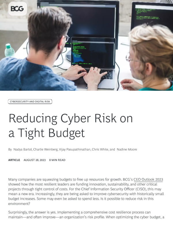【Boston Consulting Group】【20230828】Reducing Cyber Risk on a Tight Budget-7页 白皮书