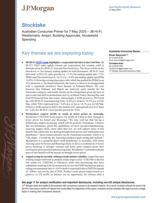 【J.P. Morgan】【20250507】Australian Consumer Sector-16页 行业研究