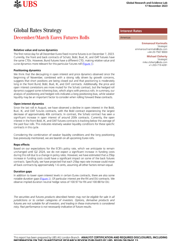 【UBS AG London Branch】【20231117】Global Rates Strategy December/March Eurex Futures Rolls-16页 行业研究
