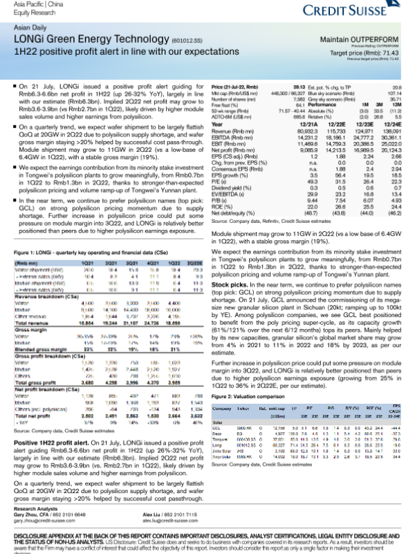 【Credit Suisse】【20220721】CS-LONGi Green Energy Technology (601012.SS)-5页 行业研究