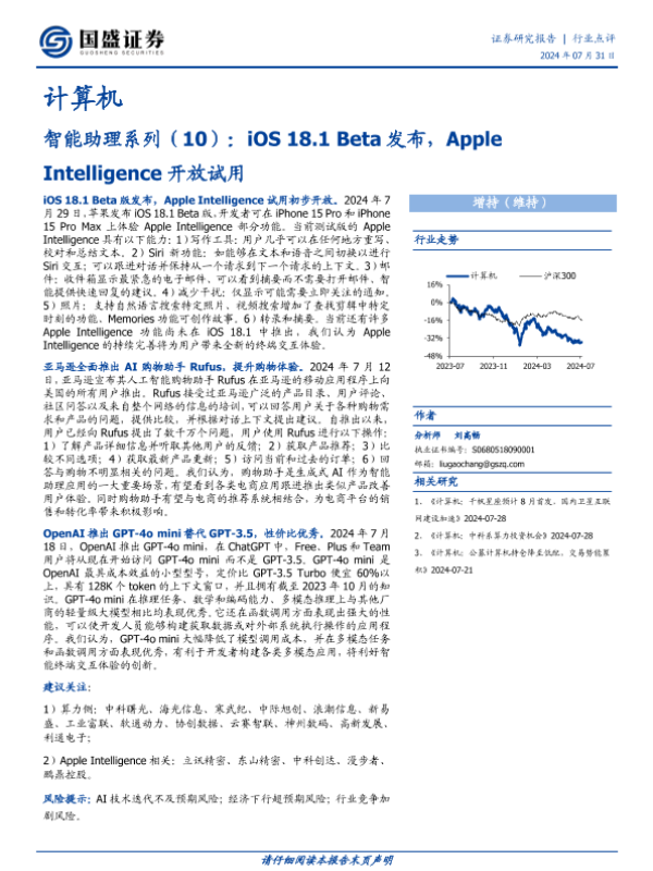 【国盛证券】【20240731】计算机行业智能助理系列(10):iOS 18.1 Beta发布,Apple Intelligence开放试用-14页 行业研究