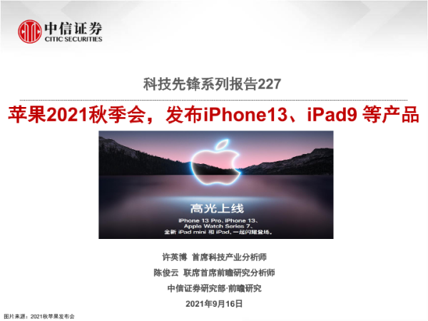 【中信证券】【20210916】科技行业先锋系列报告227:苹果2021秋季会,发布iPhone13、iPad9等产品-36页 行业研究