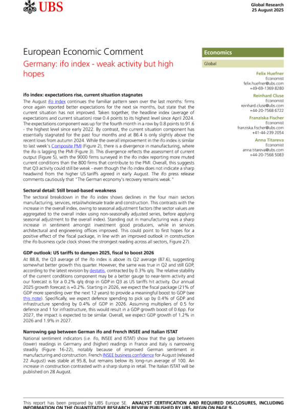 【UBS Europe SE】【202508】Germany ifo index- weak activity but high hopes-12页 证券期货研究报告