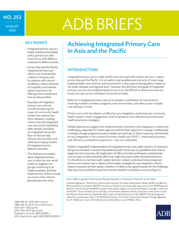 【ADB】【202308】Achieving Integrated Primary Care in Asia and the Pacific-14页 指南