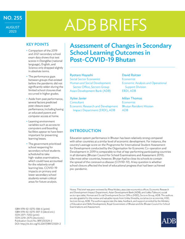 【ADB】【202308】Assessment of Changes in Secondary School Learning Outcomes in Post-COVID-19 Bhutan-12页 行业研究