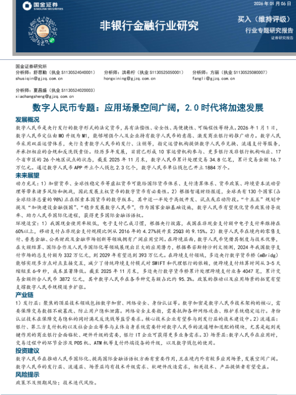 【国金证券】【202601】数字人民币专题:应用场景空间广阔,2.0时代将加速发展-18页 证券期货研究报告