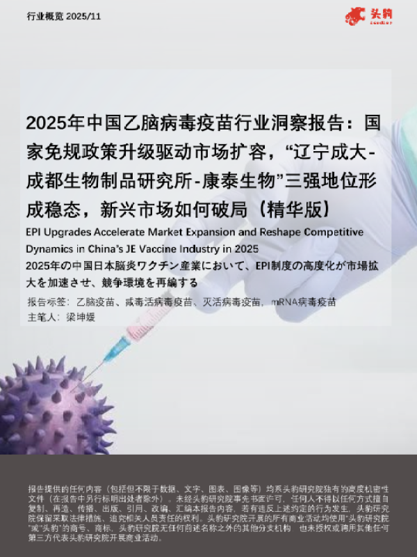 【头豹研究院】【202511】2025年中国乙脑病毒疫苗行业洞察报告:国家免规政策升级驱动市场扩容,“辽宁成大-成都生物制品研究所-康泰生物”三强地位形成稳态,新兴市场如何破局(精华版)-23页 行业研究
