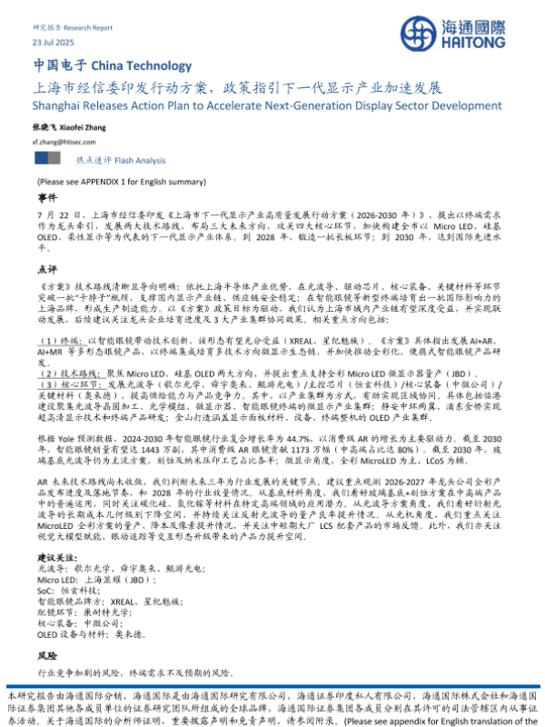 【海通国际】【20250723】上海市经信委印发行动方案,政策指引下一代显示产业加速发展-10页 行业研究
