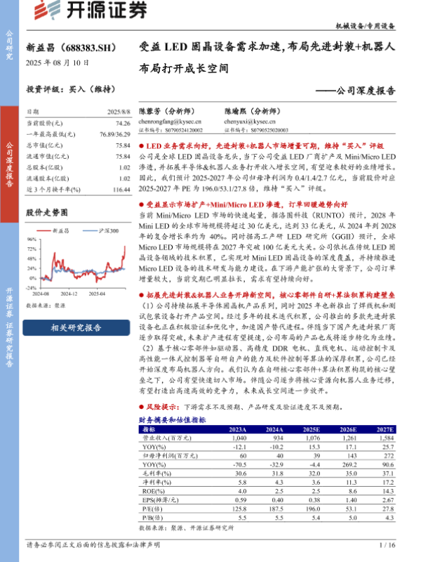 【开源证券】【20250810】新益昌-受益LED固晶设备需求加速,布局先进封装+机器人布局打开成长空间-16页 证券期货研究报告